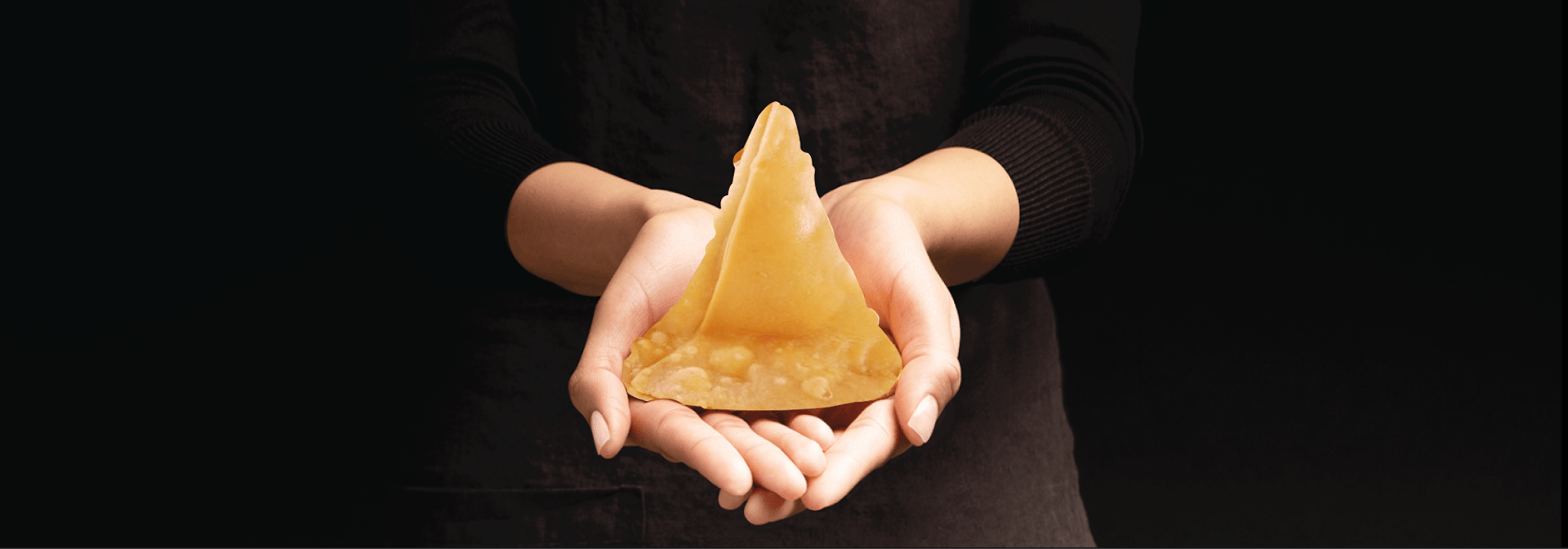 Savory snack where a pastry sheet is filled with vegetables, rolled & fried. The filling can also be customized based on client requirements.